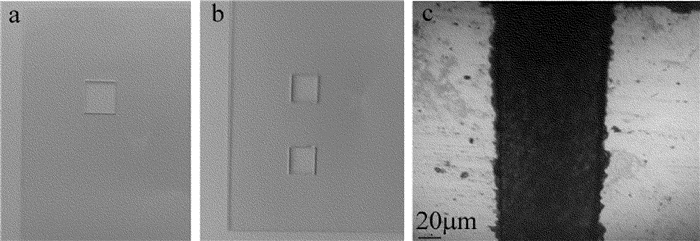 (2) 在噴口口徑為0.4mm、水束壓力為20MPa、激光功率為48W、切割速率為20mm/s時進行玻璃的微水導激光切割。厚度為0.5mm1.0mm的玻璃試樣的切割表面均比較光滑、基體內(nèi)無微裂紋存在,切縫寬度約為100μm,但1.0mm厚的玻璃試樣切割邊緣有毛刺及崩邊現(xiàn)象出現(xiàn)。