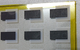玻璃、硅片、陶瓷、PET薄膜等基底上鍍膜激光刻蝕,常用于觸摸屏、光伏太陽能電池、電致色玻璃、調光玻璃、發光玻璃、其它顯示屏等行業激光刻蝕加工。